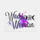 Witchy Woman in swirly script over watercolor splatters with triple moon goddess design.