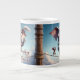 This jumbo mug features an enchanting illustration that wraps around the entire surface. An adorable elephant and a spirited mouse navigate a tightrope high above the clouds, bringing a touch of magic to your coffee routine. The elephant, holding a delicate lace parasol in one hand and a tiny cup of coffee in the other, exudes calm and confidence with its large, expressive eyes and slightly blushed cheeks. Its serene demeanour is beautifully contrasted by the small, animated mouse beside it, whose raised paws and wide eyes convey excitement and encouragement. he scene is set against a sky filled with soft, fluffy clouds, creating a sense of elevation and tranquillity. The light blue hues of the sky perfectly complement the gentle colours of the characters, adding to the visual appeal and making each sip a delightful experience. The phrase "With Coffee, Anything is Possible" is elegantly written below the illustration in a combination of bold and cursive fonts. The word "Coffee" is highlighted in a rich, dark brown, emphasizing the beverage's importance in this whimsical narrative.