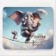 The surface of the mousepad features an enchanting illustration of an elephant and a mouse navigating a tightrope high above the clouds. The elephant, holding a delicate lace parasol in one hand and a tiny cup of coffee in the other, exudes an air of calm and confidence. Its large, expressive eyes and slightly blushed cheeks add a touch of endearing innocence to its demeanour. Beside the elephant on the tightrope, a small, animated mouse offers encouragement. Its tiny paws are raised in excitement, and its wide eyes convey a mix of astonishment and cheerfulness. The mouse's playful nature contrasts beautifully with the elephant's serene composure. The backdrop of this whimsical scene is a sky filled with soft, fluffy clouds, providing a sense of elevation and tranquillity. The light blue hues of the sky complement the gentle colours of the characters, creating a harmonious and visually pleasing composition. Below the illustration, the motivational phrase "With Coffee, Anything is Possible" is elegantly written in a combination of bold and cursive fonts. The word "Coffee" is highlighted in a rich, dark brown, emphasizing the beverage's importance in this delightful narrative.