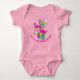 Super funny tropical pickleball party with pink flamingos, drinks and tropical foliage. Custom text. Baby t-shirt. The future dinking partner