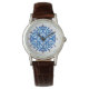 Introducing the Azure Blossom Watch! 🌸 Imagine a watch that’s as unique as your personality. The watch face features a symmetrical, intricate design with floral and geometric elements in shades of blue and white, creating a stunning visual effect. The numbers 1 through 12 are clearly marked in black, with small red dots at each hour position, making it easy to tell the time at a glance. The watch hands are sleek and black, adding a touch of sophistication to the vibrant design. The watch case is metallic with a shiny finish, giving it a polished and elegant look. This watch isn’t just a timekeeper; it’s a piece of wearable art that will brighten up any outfit and bring a smile to your face every time you check the time! 🌸🕒