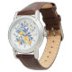 Introducing the Citrus Splash Watch! 🍊 Imagine a watch that’s as refreshing as a summer breeze. The watch face features a vibrant design with blue leaves and yellow fruits, likely lemons, creating a lively and cheerful look. The numbers are clearly marked in black, with red dots at each hour, making it easy to tell the time at a glance. The sleek black hour and minute hands add a touch of sophistication to the playful design. The watch case is metallic with a shiny finish, giving it a polished and elegant look. This watch isn’t just a timekeeper; it’s a piece of wearable art that will brighten up any outfit and bring a smile to your face every time you check the time! 🌸🕒
