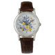 I like the illustrative watch with the lady on it. It is a great reminder that I am blessed and it has a very sturdy leather band. The colors are true and vibrant. Love the color of the Leather also. Very nice.