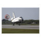 With drag chute unfurled, space shuttle Discovery lands on Runway 33 at the Shuttle Landing Facility at Kennedy Space Centre in Florida featured with Cape Canaveral.