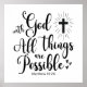 With God all things are Possible - Matthew 19:26 Bible Verse Design. This verse tells us that nothing is too hard to our Lord Jesus - all things are possible to Him, so let us trust His heart and love for us. Great gift for families and friends.