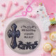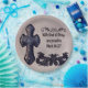 Suede looking textures with a oil painting of a metal cross with diamonds with text saying with God all things are possible Mark 10:27 in brown typography...Matching products available.