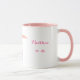 This two toned pink and white coffee mug has a cross in the middle and With God all things are possible on one side and Matthew 19:26 on the other.