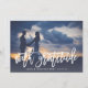 A modern wedding thank you card designed to accommodate your favourite full-bleed horizontal or landscape orientated wedding photo. "With gratitude" appears at the bottom as a white text overlay in handwritten style brush lettering, with your names and wedding date beneath. Add an optional message to the subtly patterned back using the field provided, or delete the sample text to add your own handwritten message of thanks.