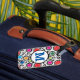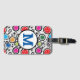 Luggage Tag with Colourful pickleballs and black circles on white background. Perfect as a gift for a fashionable pickleball player. Custom initial in a circle