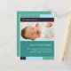 "With Joy" teal & aqua photo birth announcement. Personalise this modern and stylish photo postcard template with your baby girl's photo and details for a one-of-a-kind birth announcement.