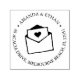 Sweetly romantic return address stamp features your name(s) and return address encircling an illustration of an opened envelope with a heart peeking out.