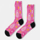 Custom monogram Pink and white tennis rackets with yellow tennis balls on pastel pink background. Cute pattern for tennis players and fans. Socks with tennis pattern. Great as a gift for tennis player