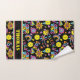 Black , Hand Towel with Groovy, retro 90s style pickleball pattern with yellow pickleballs and black background. Great gift for dad