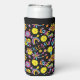 Black, Seltzer Can Cooler with Groovy, retro 90s style pickleball pattern with yellow pickleballs and black background. Great gift for him or her