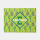 With name & initial, Green and purple tennis rackets with yellow tennis balls on juicy green background. Cute pattern for tennis players and fans. Doormat with tennis pattern. Great as a gift for tennis player. Monogram and custom name in the middle