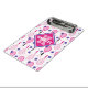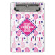 With name & initial, pastel pink and purple tennis rackets with purple tennis balls on classic white background. Cute pattern for tennis players and fans. Mini Clipboard with tennis pattern. Great as a gift for tennis player. Monogram and custom name in the middle