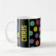 Pickleballs all over. Colourful pickleballs on black background. Nice as a gift for any pickleballer. Available in 8 styles and 2 sizes (11 oz and 15 oz). Custom text on a side