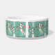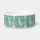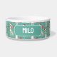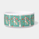 This ceramic pet bowl is a festive delight! It features a charming Christmas pattern with whippets wearing Santa hats and red collars, surrounded by Christmas trees and gift boxes on a teal background. The custom name adds a personal touch, making it a perfect holiday accessory for your pet.
