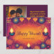 ✨ “Happy Diwali” flows across the centre in sophisticated white cursive, while underneath, you can personalise a line—perhaps your family name, a heartfelt message, or a touch of playful spirit. The back features a coordinating design and a custom photo area, turning the card into a gallery of joy where your favourite celebration snapshot steals the show.