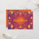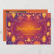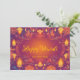 This elegant Happy Diwali card is steeped in poetic warmth and radiant detail. The front glows with a gradient sunset wash, burnt orange melting into deep plum, encircled by floral garlands and glittering diyas that shimmer like verse written in light. At its heart, golden script offers a “Happy Diwali” greeting, with space below to personalise your own poetic flourish, family name, or festive blessing.