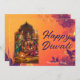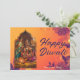 On the left, your custom photo captures a joyful Diwali moment—five loved ones dressed in traditional attire, smiling and holding sparklers, surrounded by rangoli and glowing diyas. The photo is framed in a soft arch with golden accents, evoking temple windows and festive elegance. On the right, a rich orange-to-purple gradient sets the scene for celebration, adorned with floral motifs and a glowing diya illustration. “Happy Diwali” floats above in graceful cursive, with your family name nestled below.