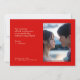 Your personalised text seamlessly floats above this tranquil scene, giving a preview of the heartfelt ceremony upcoming. Flip the invitation over, and you'll find a rich maroon background matching the maroon on the front, creating a cohesive and harmonious design. On the left side, the text provides all the essential details, ensuring your guests are well-informed and ready to celebrate your special day. On the right side, a cherished photo of the couple adds a personal touch, tying the whole design together with love and elegance.