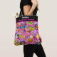 Mixed pickleball doodle on pink. Perfect as a gift for pickleball player. Tote Bag with pink pickleball motif and custom text