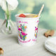 Super funny tropical pickleball party with pink flamingos, drinks and tropical foliage. Custom text