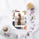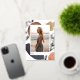 Simple and modern photo graduation announcement features a vertical photo on a background of neutral colour watercolor shapes and earth tone abstract splotches with rose gold foil accents. Personalise with your grad's name, school, and class year beneath. Add a personal message to the back, along with an additional photo.
