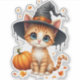 Get into the spooky spirit with this cute Halloween sticker featuring an orange kitten in a witch hat sitting next to a pumpkin. This high-quality sticker is perfect for decorating laptops, water bottles, planners, or any space needing a touch of Halloween charm. Great for cat lovers and those who enjoy adorable seasonal designs!