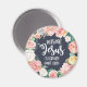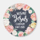 Without Jesus I Literally Can't Floral Christian magnet. Bible verse scripture quote for anyone who loves God and Jesus Christ. Features a beautiful blush pink floral pastel wreath on a navy blue background.