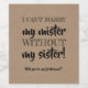 "I can't marry my mister without my sister!" wine or beer labels. Funny and creative way to ask your bridesmaid or maid of honour "Will you be my Bridesmaid?"