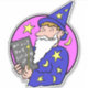 Working his magic. Illustration of a wizard. Cartoon image of a Wizard. Wizard Image in Colour. Sticker with picture of a Wizard.