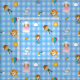 Wizard of Oz Characters on Blue and White Gingham Fabric. Patterns include Dorothy, Toto, Tin Man, Scarecrow, Cowardly Lion, Glinda the Good Witch, rainbow, cloud, balloon and umbrella.