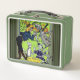 This is a standard metal lunchbox that appears to work just fine. We designed this box ourselves with an uploaded photo and custom text on the front and back. It looks absolutely beautiful except the front of the lunchbox is not centered like it shows in the photo. The print borders don't align with the inset flat part of the box where the preview photo online showed it perfectly centered in there. The back looks nice and centered though.