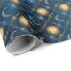 Wizard Wand Celestial Sun Moon Blue Background Wrapping Paper