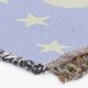 A quality printed throw has its advantages. This is a much finer weave throw than its loopier cousins, and though lighter, it is worth the investment for custom room accessorizing. The back is much prettier than the typical brown, and the fringe on the long sides very vivid, the selvage nicely done. Before photographing, I washed the throw in cold water, delicate, with a thicker woven throw the same size. On tumble dry low, this throw was dry in half the time as the other. This is a very practical quality if you use throws for furniture covers or to wrap up in frequently. The sleekness of the fabric makes it a great layer for accenting or protecting without the feeling of sitting on too much stuff. Perfect for napping or when you feel a light chill coming on. The color printing is beautiful and on this fabric, matched the design and color of my Photoshop image. This is an advantage for blending room fabrics and colors. The fringe on the short sides prints the colors from the design image and therefore varies from the side fringe. I streaked a white fractal line through the plaid pattern to give the illusion of weaving. This printed as crisp as an illusory thread, and put some white in the short side fringe, showing another advantage of print vs loomed- for artistic purposes, line lines, detail, and color integrity can be planned and preserved. My loomed throws have color limitations and more of a needlepoint texture. Print throws reproduce an exact image. The throw felt a little stiff straight out of the package, but this went away in the first delicate wash. Of course I searched the wash water for ink or bleeding and there was none.