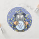 Old wizard with blue cape and crystal magic ball. Use face photo to customise. Custom text.