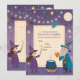 Invite your little sorcerers to a magical celebration with this Wizards & Witches Birthday Invitation! Featuring enchanting wizards, playful witches, floating spellbooks, glowing wands, and sparkling stars, this design captures a whimsical fantasy theme. The rich colors of purple, blue, and gold, combined with mystical light effects, create a fun and magical atmosphere. A blank space in the center allows you to easily add party details like date, time, and location. Perfect for children’s or teen birthday parties with a wizarding twist!