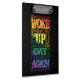 Embrace your authentic self with this fun and bold LGBTQ+ clipboard featuring the phrase "Woke Up Gay Again" in vibrant rainbow colors! Perfect for Pride celebrations, queer visibility, and everyday wear, this design is a playful way to show off your LGBTQ+ pride with humor and confidence.