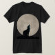 A black silhouette of a wolf with head raised up in the air howling at a very large full moon.