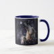 Wolf and puppy howling at the moon mug