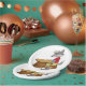 This design is a wolf at a table. The female wolf is sitting up at a wooden table. This wolf at a table design looks great on this Paper Plates