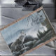 Two wolves sitting amongst rocks outside of the castle. Mountains all around.