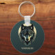 Keychain of a gorgeous tribal wolf face in beige blue with the word Warrior. Fear clouds the mind as a customisable text option