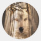 Wolf face in the sunbeam of a bare woods, ghostly and spiritual