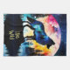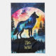 Watercolor wolf on the mountain Silhouette against Full moon, Colourful with clouds and trees,
