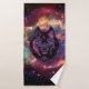Wolf Graphic Illustration, Cosmic Background Bath Towel Set
