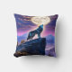 Wolf Howling at Full Moon Over Mystic Mountains Cushion