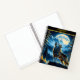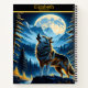 Under a bright full moon, a majestic wolf stands atop a rock, howling into the night. Surrounded by towering pine trees and majestic mountains, the scene captures the wild spirit of nature, evoking a sense of tranquillity and power in the wilderness.